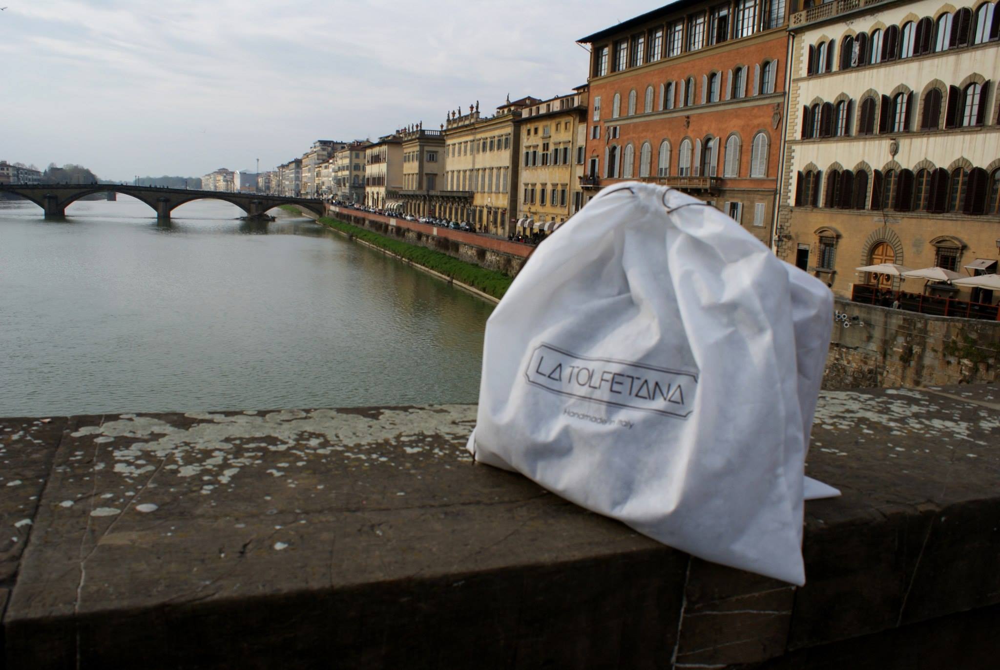 Sull’affascinante cornice di Ponte Santa Trinita a ridosso del Ponte Vecchio,  in questo contesto assolutamente Hipster, portano al centro dell’attenzione i due accessori simbolo del Marchio La Tolfetana: la Catana Grande realizzata in Vacchetta Naturale e la Catana misura Grande in Marrone Testa di Moro.